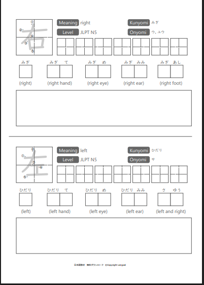 *書き方がわからない人は、見本を載せていますので参考にしてください。ノートの書き方など、まだ慣れていないので右寄せで縦書きに書くと教えてあげてください。