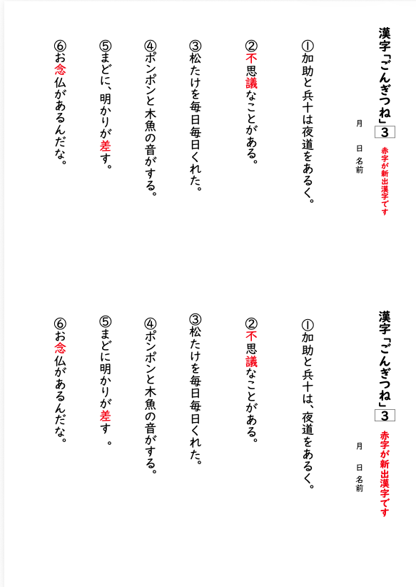 ②漢字学習 いつものようにプリントを添付します。次回は、オンライン授業ですので、スクリーン上で読み方を答えてもらいます。