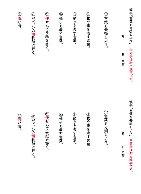 ①漢字学習「言葉を分類しよう」P35 プリント添付